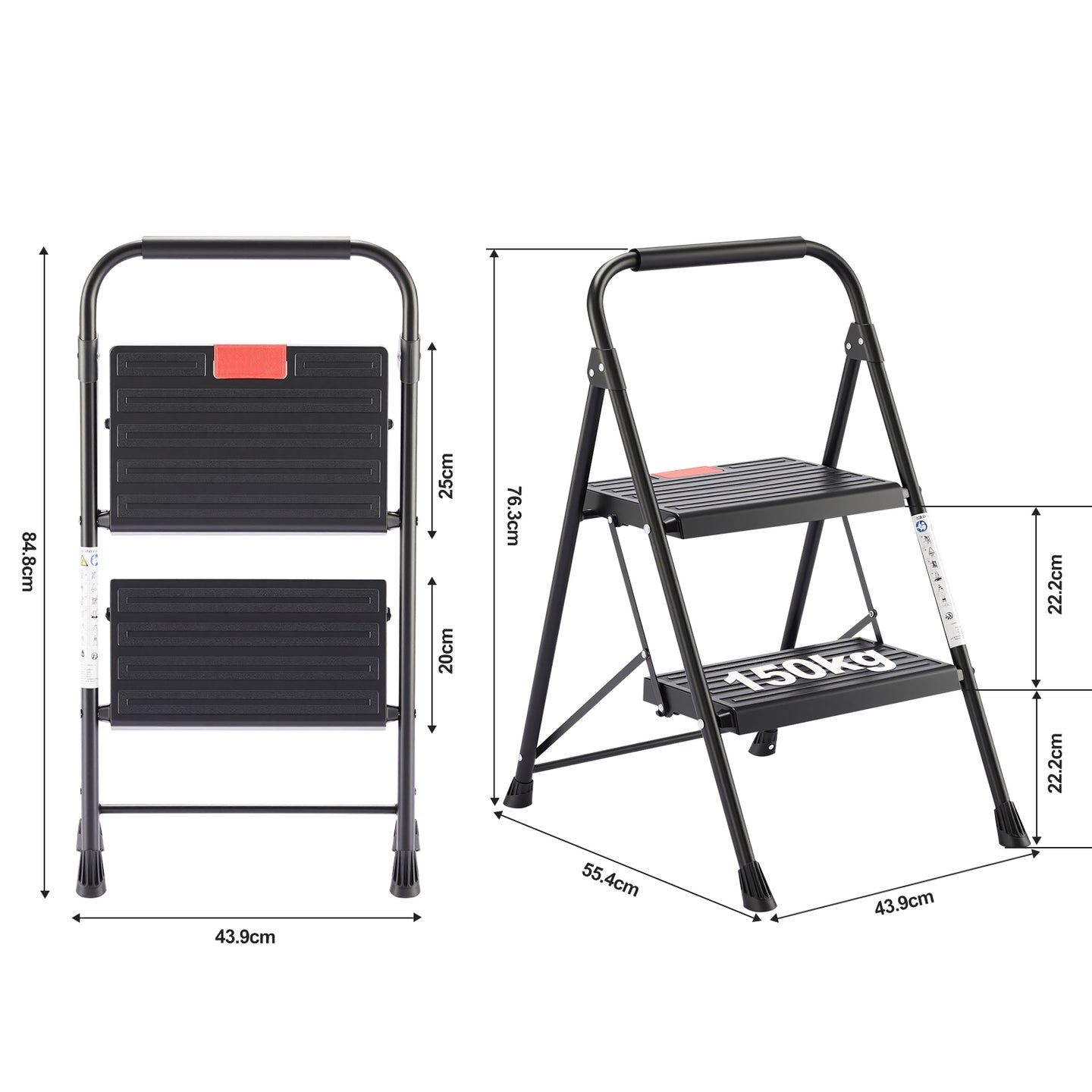 Sweetcrispy rutschfeste 2-Stufen-Trittleiter mit Sicherheitsverschluss und Metallgestell, Höhe ca. 85 cm