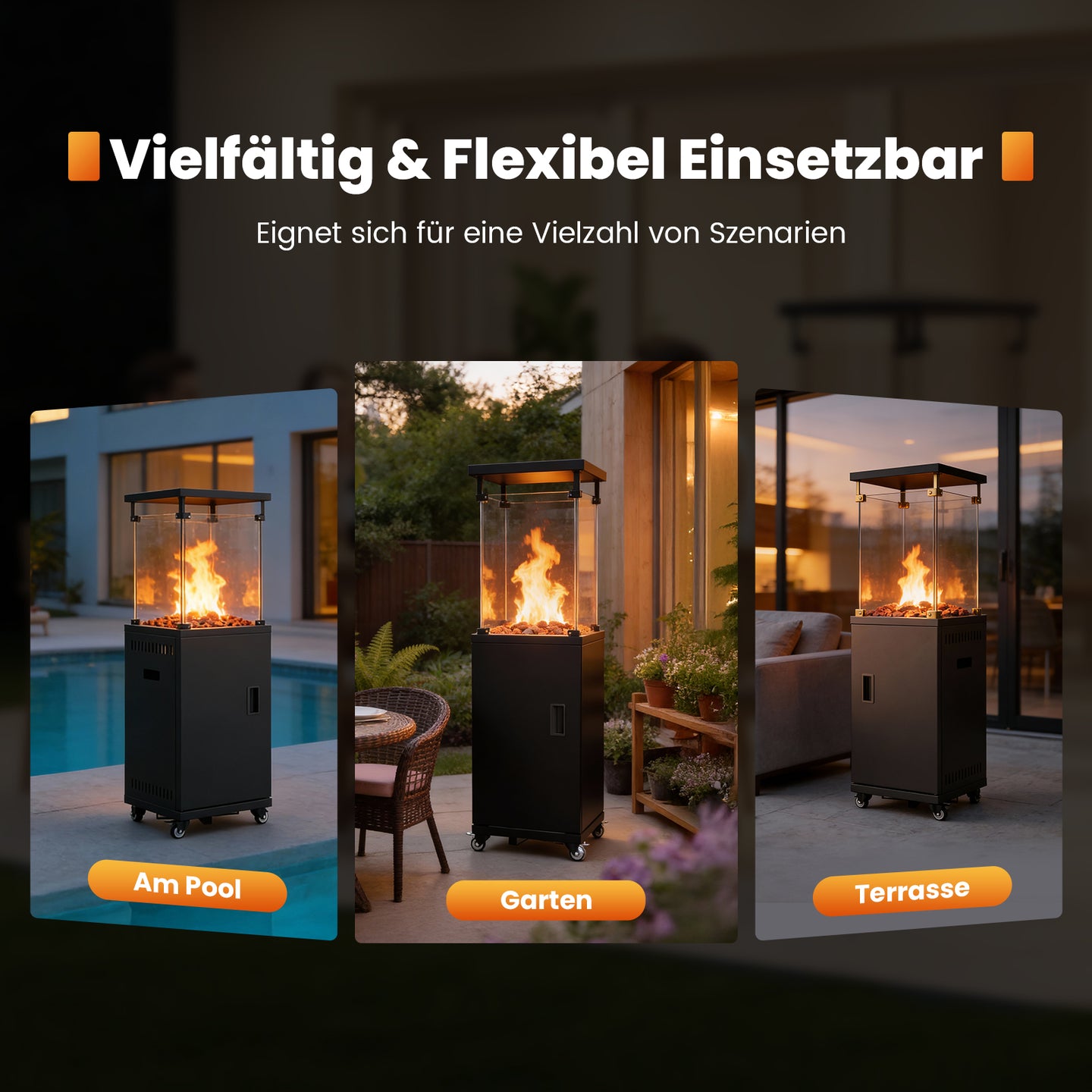 Sweetcrispy Terrassenheizstrahler Gasheizung 11kW mit Rollen und Kippschutz