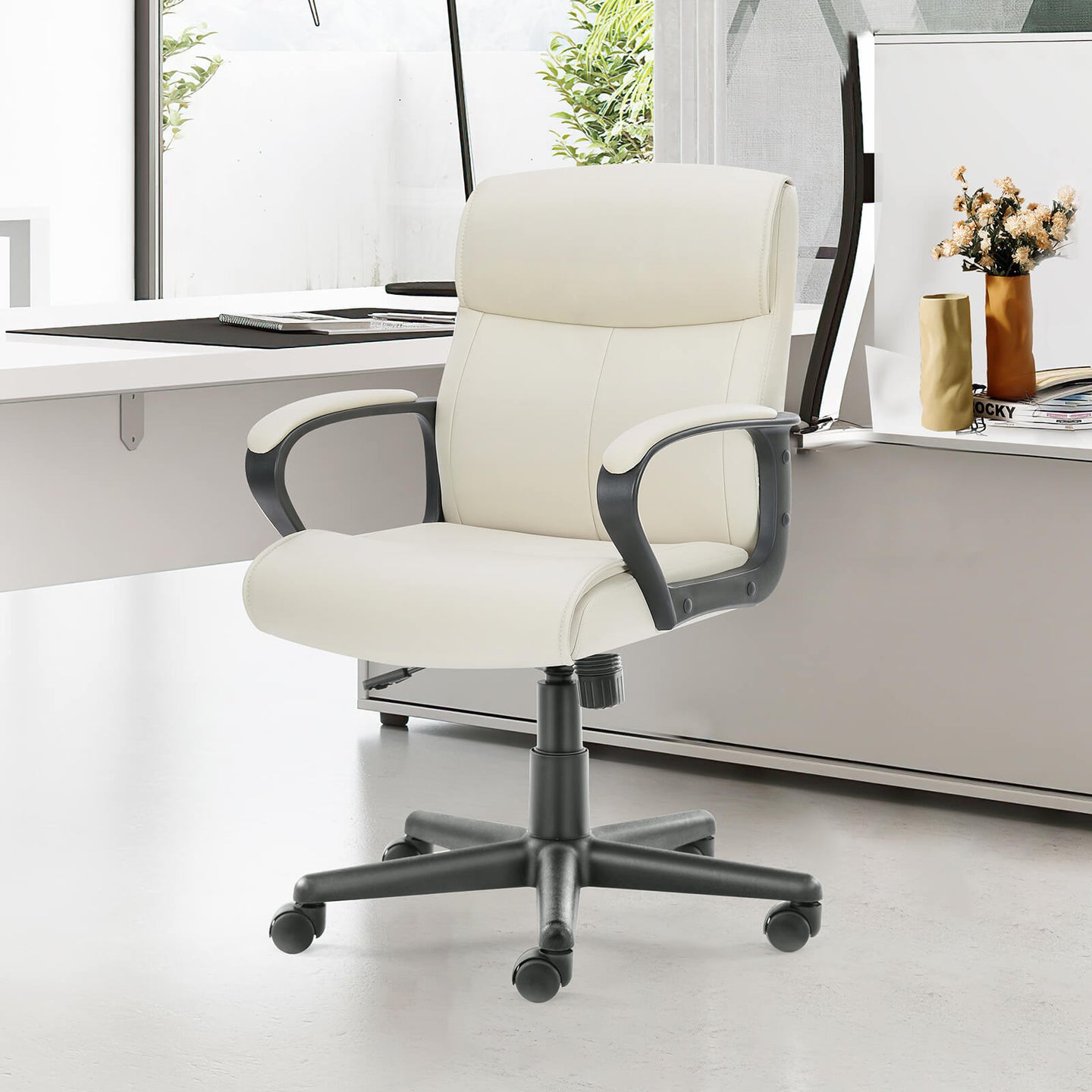 PREMIUM MATERIAL - Dieser Mid-Back-Bürostuhl ist aus hochwertigem Bonded-Leder mit guter Zähigkeit und reißfesten Eigenschaften, so dass es sehr bequem zu sitzen, wie auf weicher Baumwolle sitzen. Darüber hinaus hat das Material eine gute Luftdurchlässigkeit, die es nicht schwül für eine lange Zeit macht, und hält Sie kühl den ganzen Tag lang.